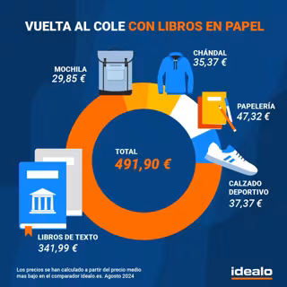 Las familias gastarán 491,9 euros por niño en 'la vuelta al cole' de este 2024, según un estudio realizado por idealo.es. Los libros de texto, con un coste medio de 341,99 euros, se llevarán la mayor parte del presupuesto como ha precisado el comparador de precios online.