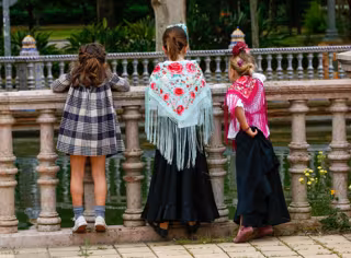 Archivo - Unas niñas vestidas de flamencas en Sevilla. - Eduardo Briones - Europa Press - Archivo