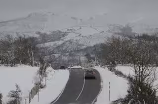 Dos coches circulan por un paisaje nevado, a 24 de febrero de 2024, en Chandrexa de Queixa, Ourense, Galicia (España). - Rosa Veiga - Europa Press