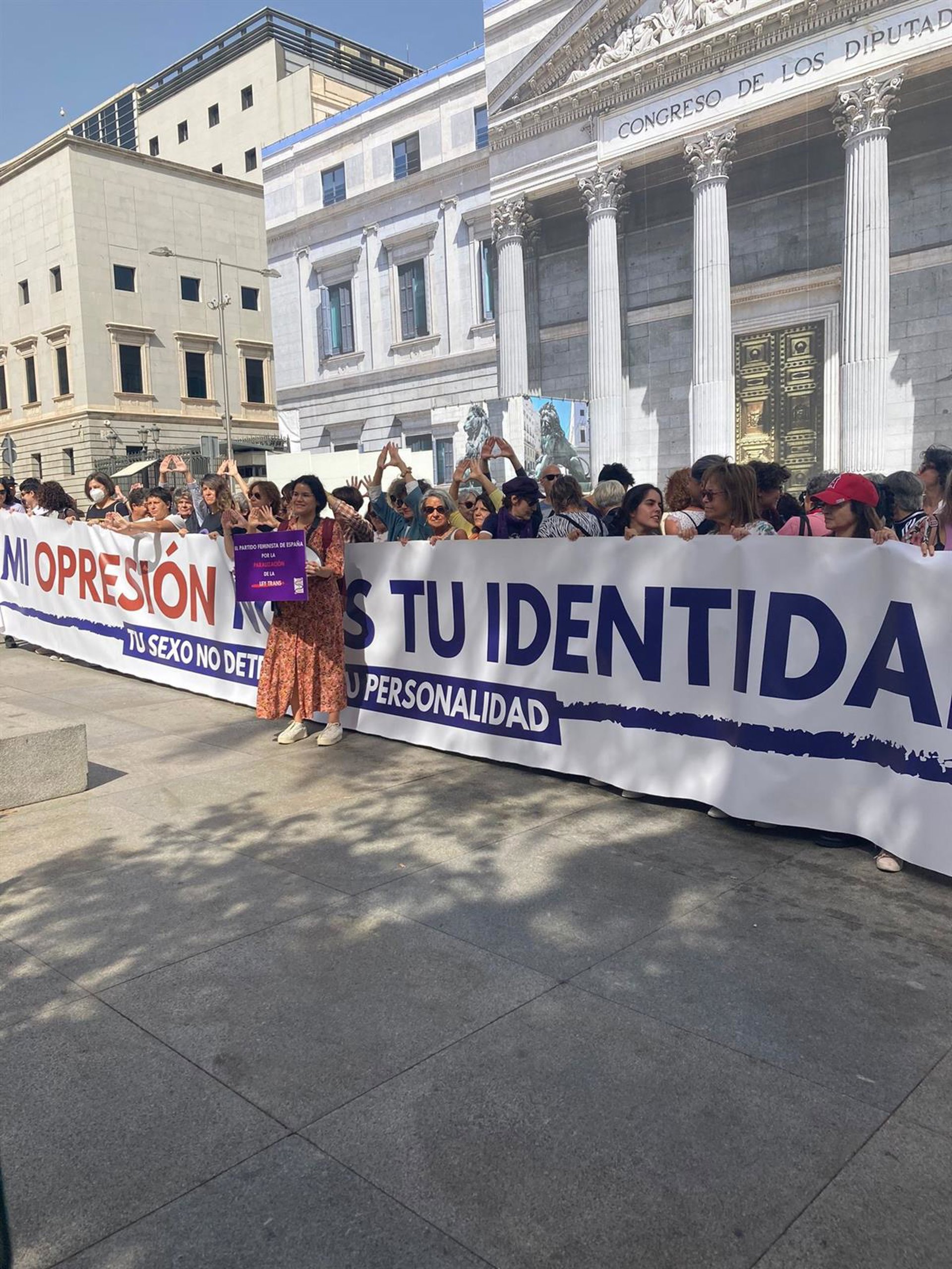 Feministas ante el Congreso contra la ley trans - EUROPA PRESS