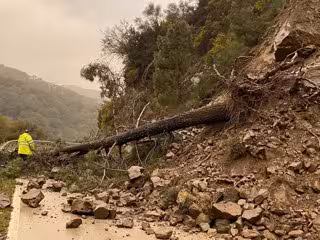 Carretera provincial en Málaga afectada por desprendimientos de árboles y piedras debido a las lluvias y el viento que azotan la provincia - DIPUTACIÓN DE MÁLAGA