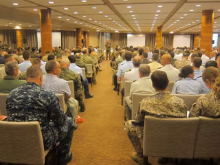 El encuentro ha terminado con la intervención del teniente general del Cuartel General de Bétera (Valencia), Rafael Comas. Durante el 'Trident Juncture 2015', el centro valenciano será certificado como Mando Componente Terrestre de la nueva Fuerza de Respuesta Aliada (NRF) para 2016.