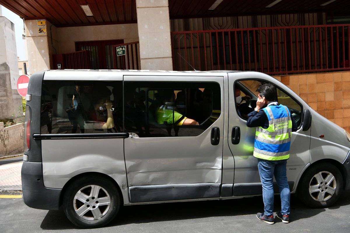 Furgoneta con menores marroquíes a las puertas del juzgado tras presentar una denuncia solicitando habeas corpus minutos antes de ser repatriados a su país de origen, en la frontera de Tarajal, a 16 de agosto de 2021, en Ceuta (España). De los 15 menore - Antonio Sempere - Europa Press