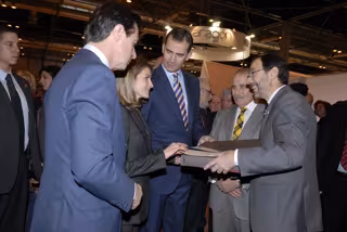 Con motivo de su visita al expositor de la Comunidad foral, el director general de Turismo y Comercio, Carlos Erce, les ha hecho entrega de una reproducción de las láminas históricas del Castillo de Olite, un obsequio relacionado con uno de los principales atractivos del stand de Navarra en la feria, la presentación de la ruta de los castillos y fortalezas.