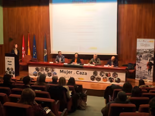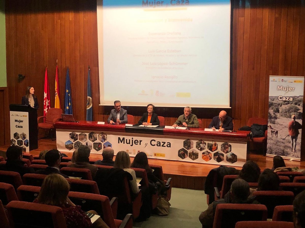 La jornada 'Mujer y caza' contó con la participación de la directora general de Producciones y Mercados Agrarios del Ministerio de Agricultura, Pesca y Alimentación, Esperanza Orellana; el subdirector de Posgrado e Investigación de la ETSI de Montes, Forestal y del Medio Natural, Alfonso San Miguel; el director de Fundación Artemisan, Luis Fernando Villanueva, y el profesor e investigador de la Universidad de Extremadura, Ignacio Rengifo.