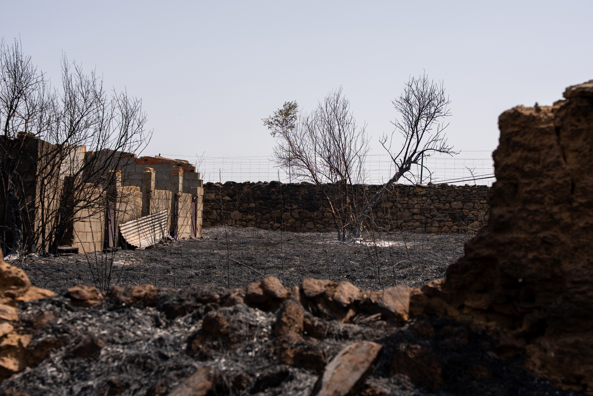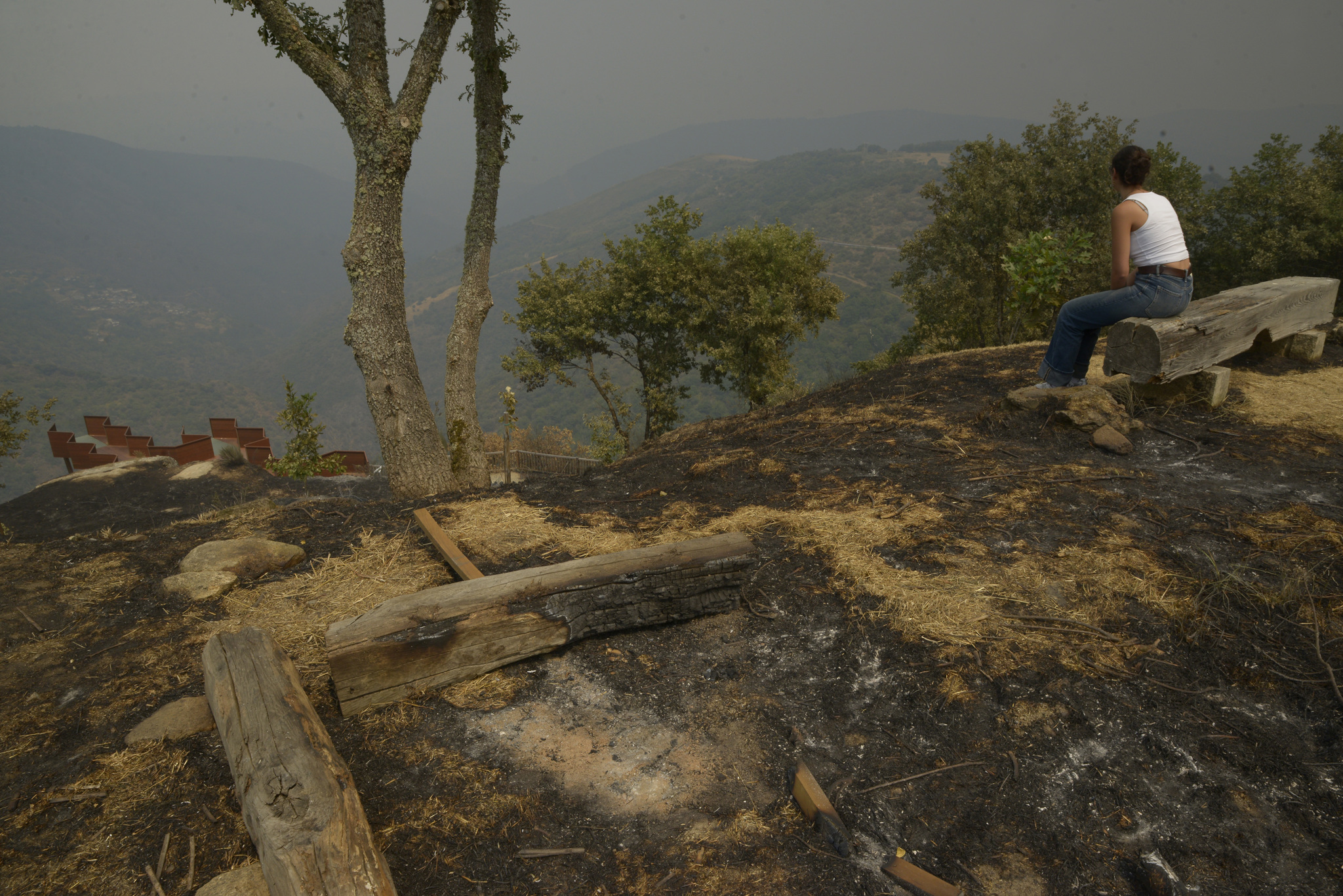 Varios vecinos observan sus fincas tras el paso del fuego, a 13 de agosto de 2025, en Somoza, Pobra de Trives, Ourense - Rosa Veiga / Europa Press