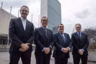 Andrés Conde, Antonio Vila Bertrán, Ernesto Gasco y Marc Simón ante la ONU - SARAH YENESEL - FUNDACIÓN LA CAIXA
