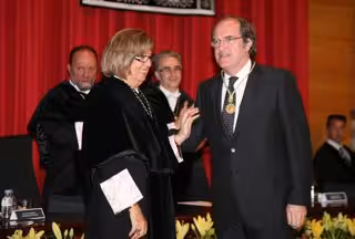 La rectora le ha recordado que la Universidad le entrega la medalla, pero "a cambio recibe el honor de contar contigo, entre sus miembros más preclaros" y lo ha definido como "un hombre ilusionado con los ideales de desarrollo y progreso social, con un creyente del conocimiento y un activista de la tolerancia, con un amante de la comunicación, amigo de la palabra y de las palabras, con un entusiasta de la enseñanza y del poder de la formación".