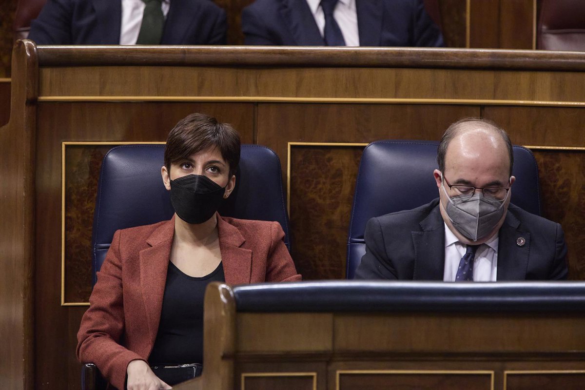 El ministro de Cultura y Deporte, Miquel Iceta, y la ministra portavoz, Isabel Rodríguez, en una sesión plenaria, en el Congreso de los Diputados, a 16 de marzo de 2022, en Madrid (España). El pleno está marcado, entre otros asuntos, por las preguntas d - Jesús Hellín - Europa Press