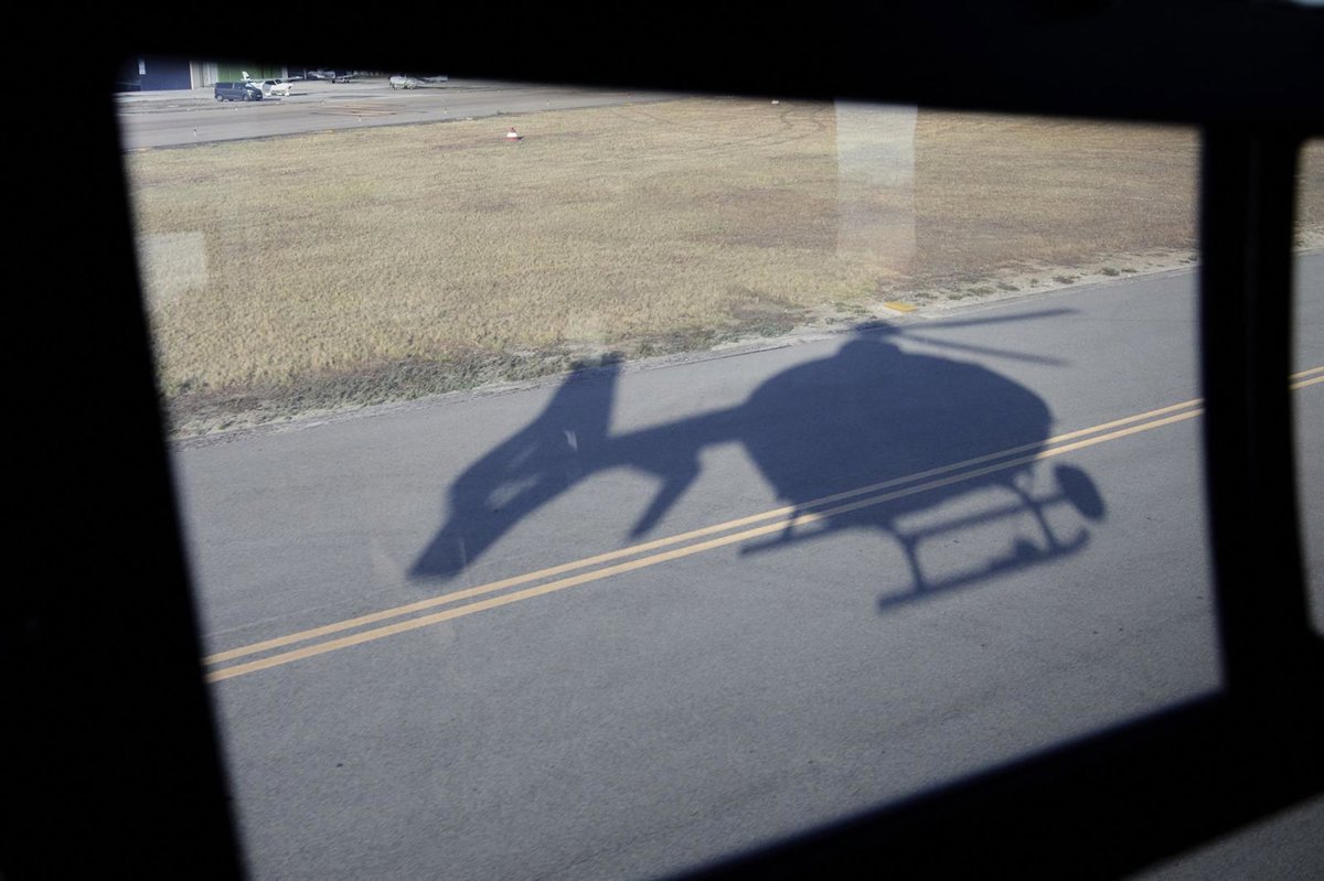 Archivo - Sombra de uno de los helicópteros Pegasus de la DGT para controlar el tráfico por las carreteras de la zona este de la Comunidad de Madrid, a 28 de julio de 2021, en la Base DGT Madrid-Cuatro Vientos, Madrid, (España). El helicóptero Pegasus, un - Jesús Hellín - Europa Press - Archivo