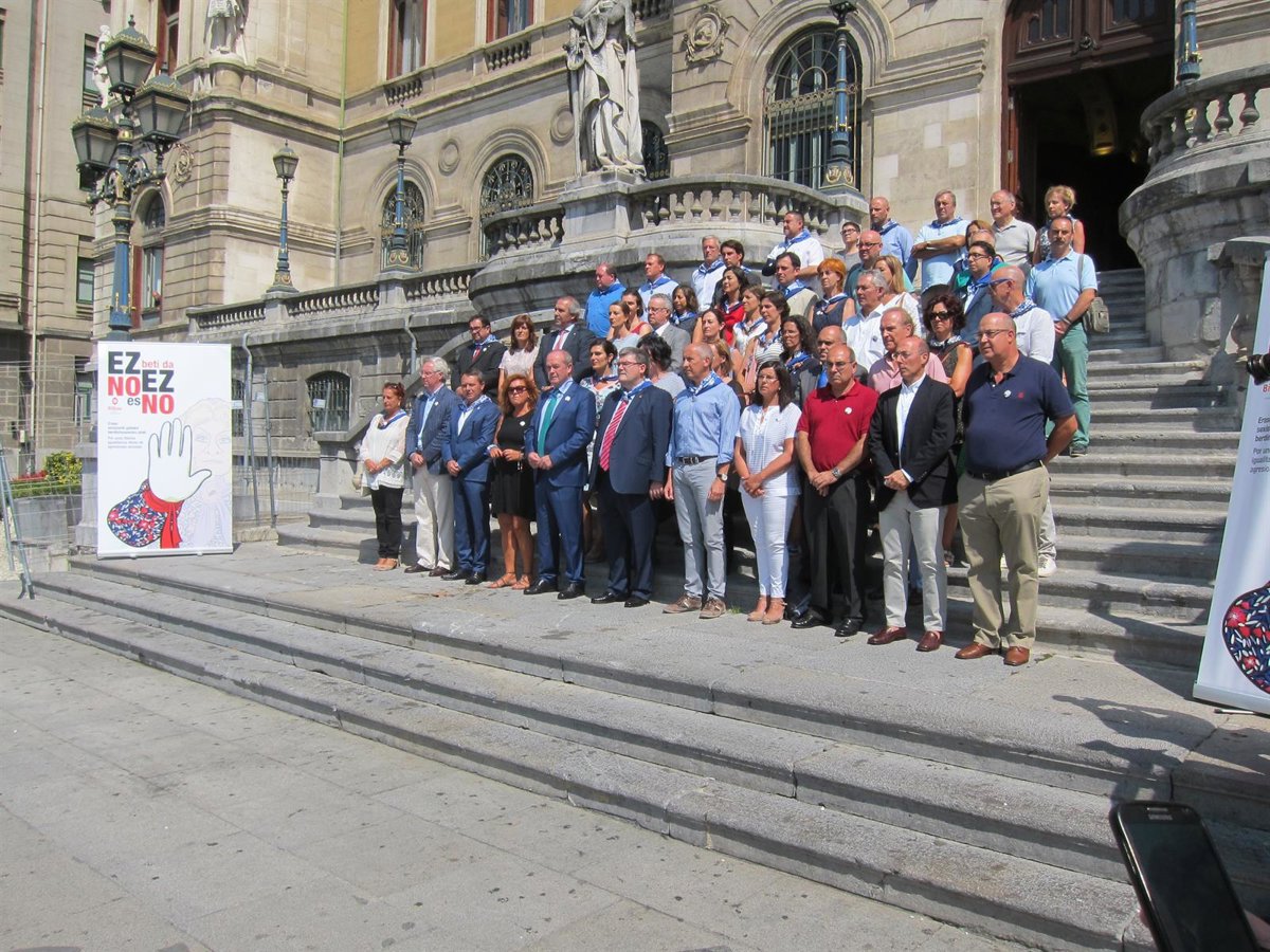 El Ayuntamiento de Bilbao y el Gobierno vasco han pedido el compromiso de toda la sociedad en contra de la "lacra" que suponen las agresiones sexuales. Así lo han puesto de manifiesto el alcalde de Bilbao, Juan María Aburto, y el portavoz del Ejecutivo autonómico, Josu Erkoreka, en el transcurso de la concentración silenciosa llevada a cabo este miércoles en las escalinatas del Consistorio de la capital vizcaína, en repulsa por los últimos episodios de este tipo registrados durante esta Aste Nagusia.