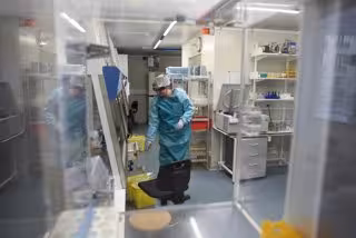 February 20, 2020 - Paris, France: A scientist at work in the P2 plus laboratory where the team of professor Frederic Tangy do research for a vaccine against the Covid-19 coronavirus at Institut Pasteur. (Mehdi Chebil/Contacto) - Mehdi Chebil