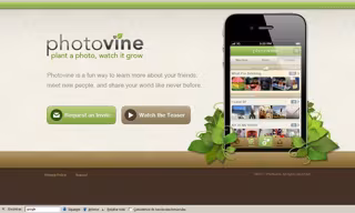 "Planta una foto, mírala crecer". La web Photovine.com muestra la pantalla de un iPhone con una nueva red social de fotografía en la que, según explica Google, se "plantará" una imagen y se verá cómo crece y se ramifica con las interacciones entre usuarios.