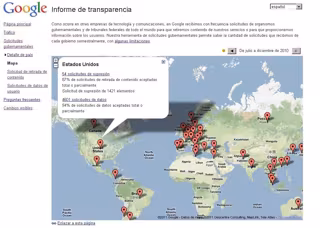 Google ha creado un servicio en el que los usuarios van a tener acceso a un completo sistema de informes en el que se comunica el número de peticiones gubernamentales de datos de usuarios. La compañía permite ver cuantas veces un estado ha pedido información de un internauta, permitiendo desglosar la información por servicio y presentando estadísticas sobre el porcentaje de veces que se han facilitado los datos.