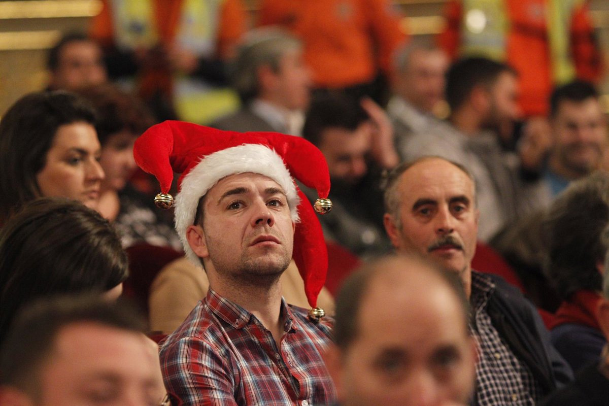 Algunas filas se han levantado para aplaudir y celebrar con gritos de júbilo la llegada del 'Gordo' pero el entusiasmo ha sido efímero después de que los asistentes comprobaran que sus décimos no habían sido premiados. A continuación, algunos de los presentes han abandonado el salón, aunque aún quedan por repartir el tercer premio y dos quintos.
