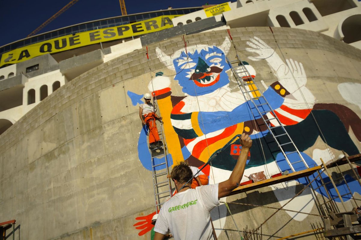 Mientras tanto, los activistas que ayer instalaron una oficina 100 por 100 sostenible en el interior del hotel para pedir su demolición, siguen realizando varias actividades como la decoración del hotel, para lo que cuentan con la colaboración del artista 3TTMan, que está elaborando un gran mural en una de las paredes del edificio.