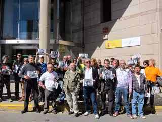 Integrantes del grupo de apoyo a Dolors Carrasquilla, en huelga de hambre, se han concentrado este lunes frente al Instituto Nacional de la Seguridad Social de Valencia para exigir a su directora una reunión urgente y que revise el caso para devolverle el grado de gran invalidez que le habían reconocido en Cataluña.