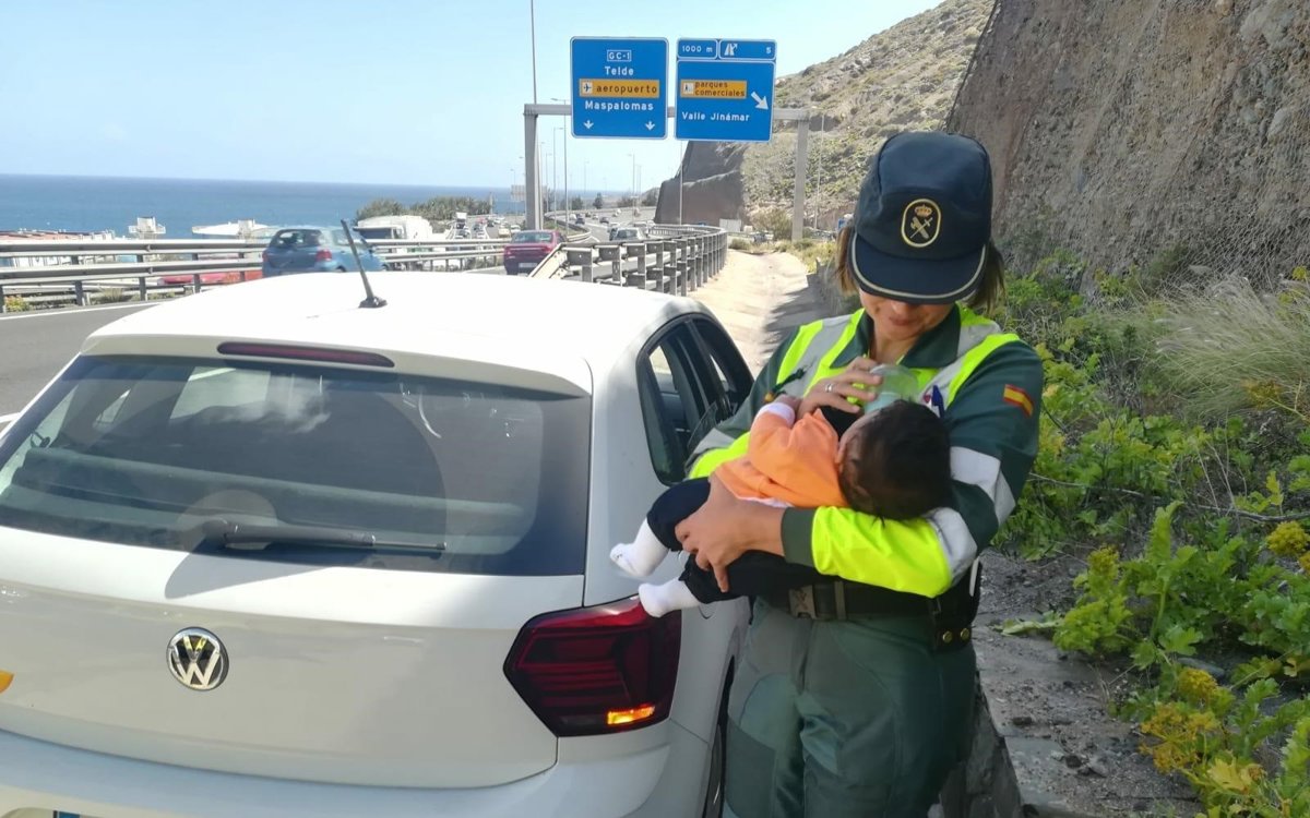 Una guardia civil tuvo que hacerse cargo de un bebé y alimentarlo, después de que su padre sufriese un amago de infarto mientras conducía. Aunque en el coche iban ambos progenitores, la guardia civil, del Subsector de Tráfico de la Benemérita de Las Palmas de Gran Canaria, tuvo que dar el biberón al niño ante el nerviosismo que mostraba la madre tras el incidente.