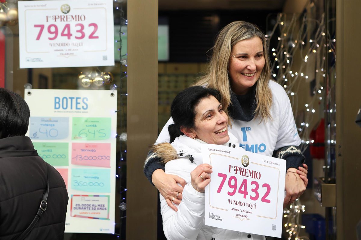 Empleadas de la administración situada en la Avenida de la Constitución, 20 celebran que han vendido parte del número 79432 correspondiente al ‘Gordo’ de la Lotería de Navidad 2025, a 22 de diciembre de 2025, en Villablino, León, Castilla y León (España). - Carlos Castro - Europa Press