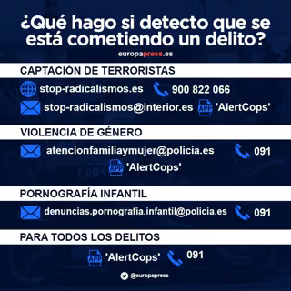 - Aplicación móvil 'AlertCops': podrás notificar de una posible radicalización o de otros tipos de delitos, como robos, acoso escolar, vandalismo, desapariciones de personas o violencia de género.