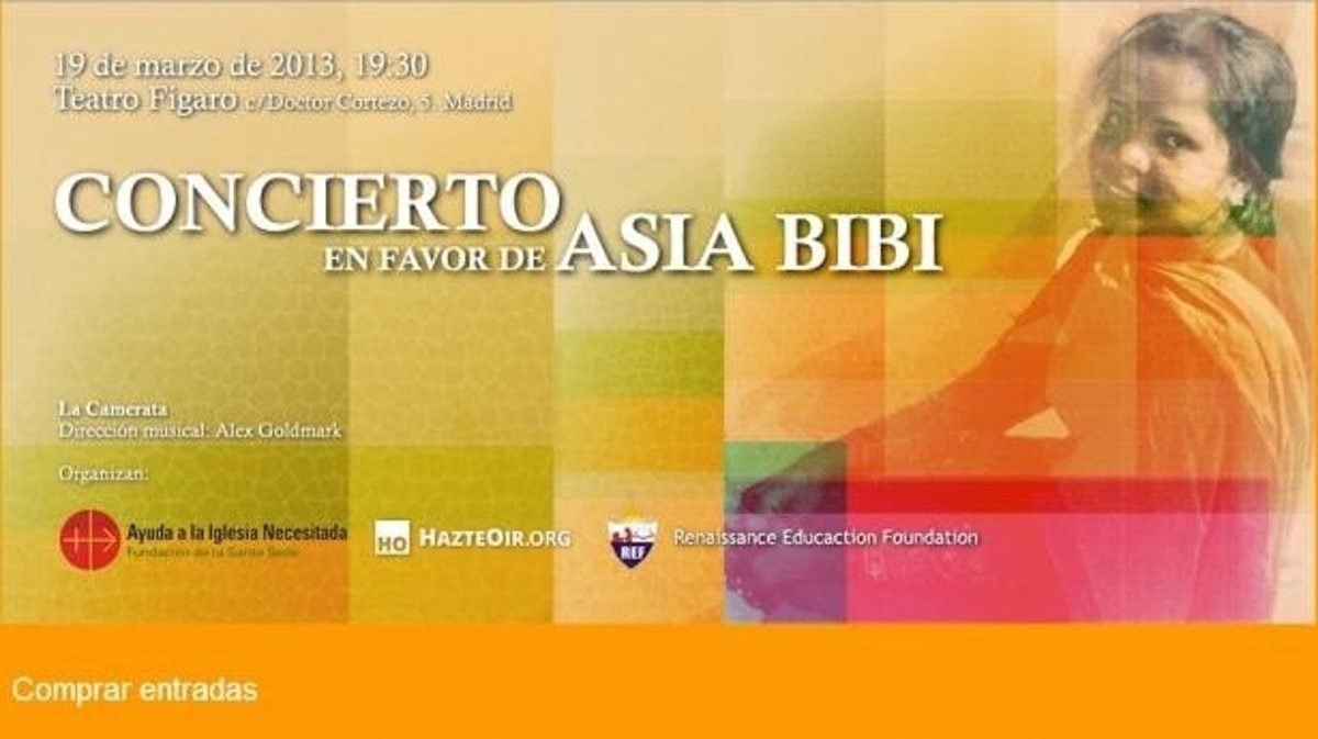 La entradas --que se pueden adquirir a través de un enlace de la web www.hazteoir.org-- costarán 20 euros o 15, en el caso de que se compren dos o más. El dinero recaudado se destinará a la contratación de un abogado "sin el que Asia Bibi no saldrá con vida de la cárcel".