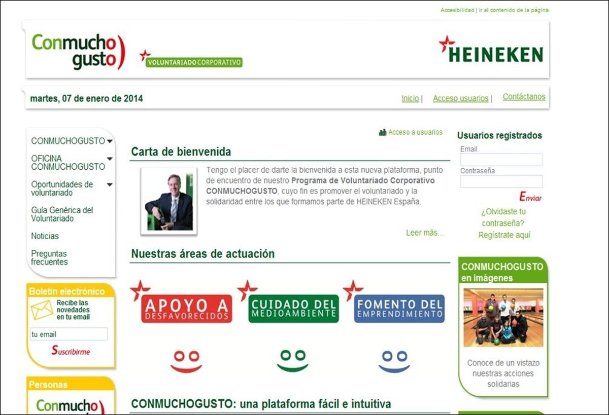 Heineken España ha lanzado su programa de voluntariado corporativo 'Conmuchogusto', una iniciativa que ofrece a sus empleados la oportunidad de compartir su tiempo y ayudar a la sociedad a través de las distintas propuestas solidarias publicadas en la plataforma digital 'http://www.voluntariado.org/heineken/'.