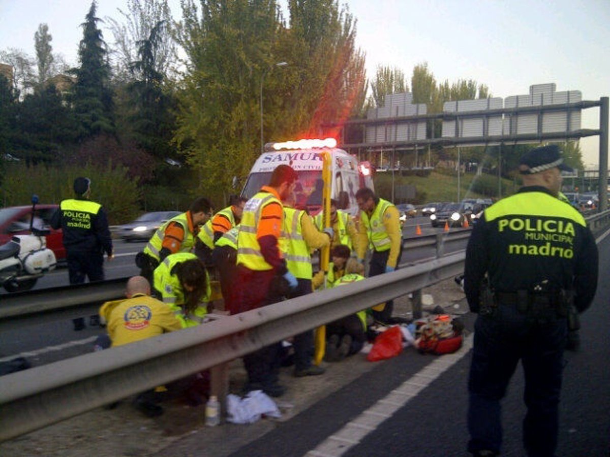 Hasta el lugar se acercó una ambulancia del Samur-Protección Civil, cuyos sanitarios han atendido a los heridos. El más grave sufre traumatismo craneoencefálico severo, traumatismo tarácico severo y fractura en ambas piernas. Ha tenido que ser intubado y trasladado al cercano Hospital de La Paz de Madrid.