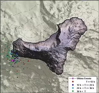 Asimismo, este viernes se registraron en la Isla del Meridiano un total de 41 sismos de entre 3.1 y 1.5 grados. La magnitud máxima de esta serie, de 3.1 grados, se registró a las 03.50 horas, con epicentro en el mar, al suroeste de Frontera y a unos 21 kilómetros de profundidad. La profundidad de estos movimientos sigue manteniéndose en torno a los 20 kilómetros (entre 25 y 16 kilómetros).