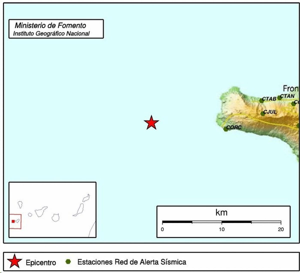 El sismo, con epicentro en el mar, ha ocurrido a 20 kilómetros de profundidad al oeste del municipio de Frontera, al igual que la mayoría de temblores registrados desde que se produjera la intensificación sísmica en la isla.