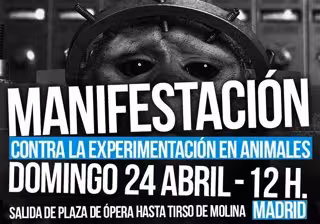 La asociación Igualdad Animal ha convocado una manifestación para el próximo domingo, día 24, en Madrid para protestar contra la Experimentación en Animales.