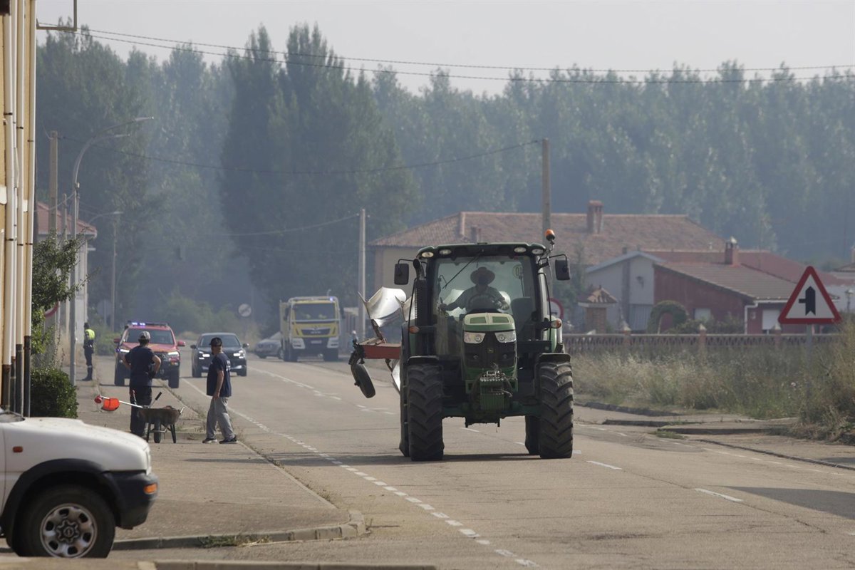 Un tractor por la carretera tras un incendio, a 13 de agosto de 2025, en Herreros de Jamuz, León, Castilla y León (España). - Fernando Otero - Europa Press