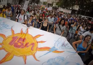 Los 'indignados' se están ubicando a lo largo de toda la plaza y se han sentado formando varios círculos amplios dejando libre su interior. Los congregados, de todas las edades, reciben con aplausos a las diferentes columnas que empiezan a llegar a Sol.