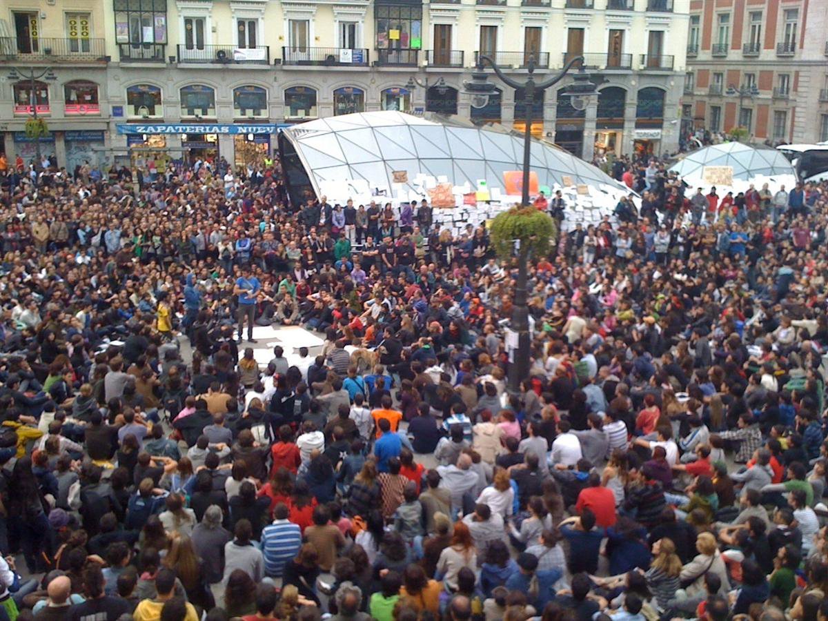 Tras la marcha multitudinaria, un centenar de jóvenes decidió pasar la noche acampados en la histórica plaza madrileña para "mostrar su rechazo a la actual situación económica, social y política". Un día después, solicitaron permiso a la Delegación del Gobierno para mantener la carpa hasta el 22-M.