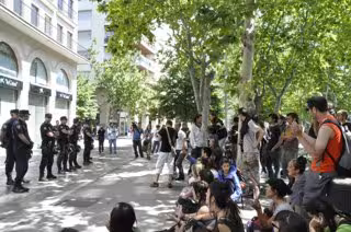 "Nos han dicho que teníamos que desalojar y nos hemos sentado". Entonces "han empezado a agarrarnos, a un compañero lo han dejado tocadísimo y magullado, en la espalda tiene un moratón bastante grave", ha dicho un miembro del 15M. Por ello, los manifestantes valoran denunciar el caso.