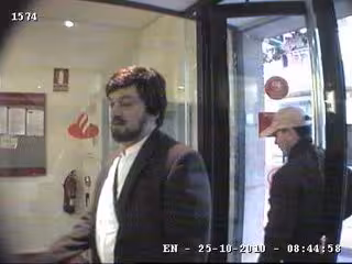 La grabación, de casi un minuto de duración, permite ver a los dos individuos frente a la caja, uno de complexión delgada --con gorra y gafas--, de aproximadamente 1,65 metros de estatura, y otro más grueso, con peluca y bigote postizo, unos diez centímetros más alto.