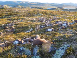 Un grupo de expertos se han desplazados al lugar para tomar muestras de los renos muertos, como parte de un proyecto para monitorizar a alces y venados por enfermedades. Cinco de los 323 animales fueron hallados vivos, pero con graves lesiones y fueron sacrificados.