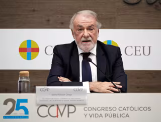 "Ha llegado el desguace de la nación. Es una etapa de totalitarismo, de cultura de la cancelación a quienes se opongan a esas leyes que se han construido en estos años, unida a la balcanización", ha alertado Mayor Oreja, este viernes, en la conferencia inaugural del 25 Congreso Católicos y Vida Pública, organizado por la Fundación Universitaria San Pablo CEU y la Asociación Católica de Propagandistas (ACdP), y que se celebra en la Universidad CEU San Pablo desde este viernes 17 de noviembre hasta el próximo domingo.
