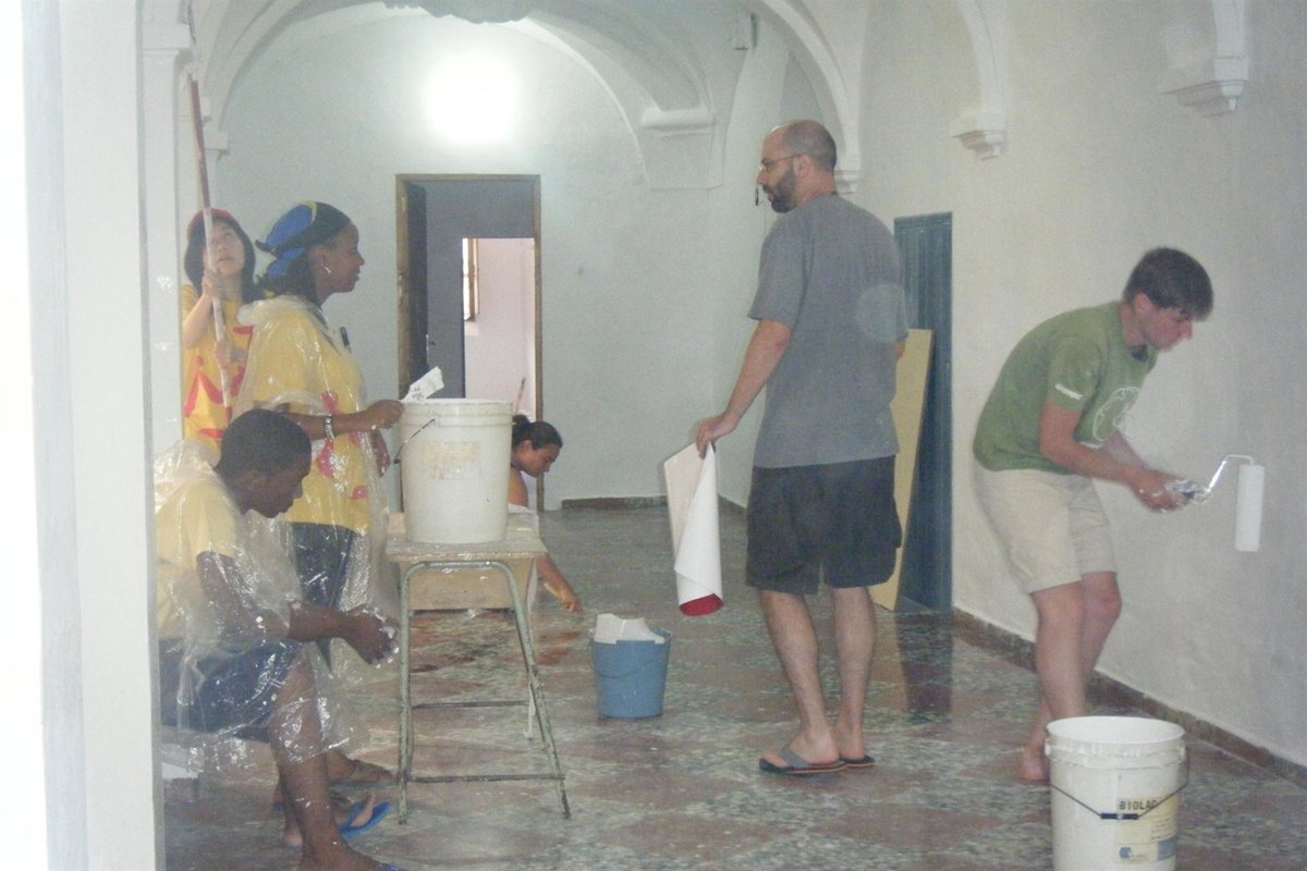Un grupo de 29 jóvenes procedentes de países como Taiwán, Zimbabwe y Tanzania realizan durante esta semana labores de pintura en el Convento Franciscano de Fuente del Maestre (Badajoz).