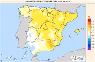 Anomalías de la temperatura en julio de 2019 en España - AEMET - Archivo
