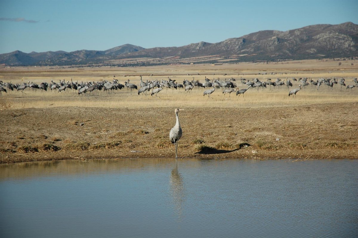 En concreto, la cuenca de la Laguna de Gallocanta ofrece a estas aves una amplia superficie de rastrojo de cereal, un alimento "fácil y accesible, en forma de semilla depositada en el suelo después de la cosecha y muy abundante este año debido a las tormentas de granizo que sufrió la zona el pasado verano".