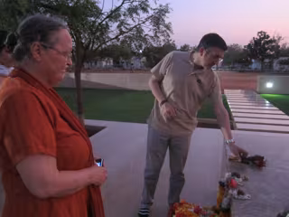 Ante el lugar donde fue enterrado Vicente Ferrer, su esposa ha recordado la figura de su marido y la labor que ha realizado en India, y que ha defendido mantener, ya que, a su juicio, siguen existiendo 400 millones de personas que pasan por dificultades, aunque India esté considerado como un país emergente.