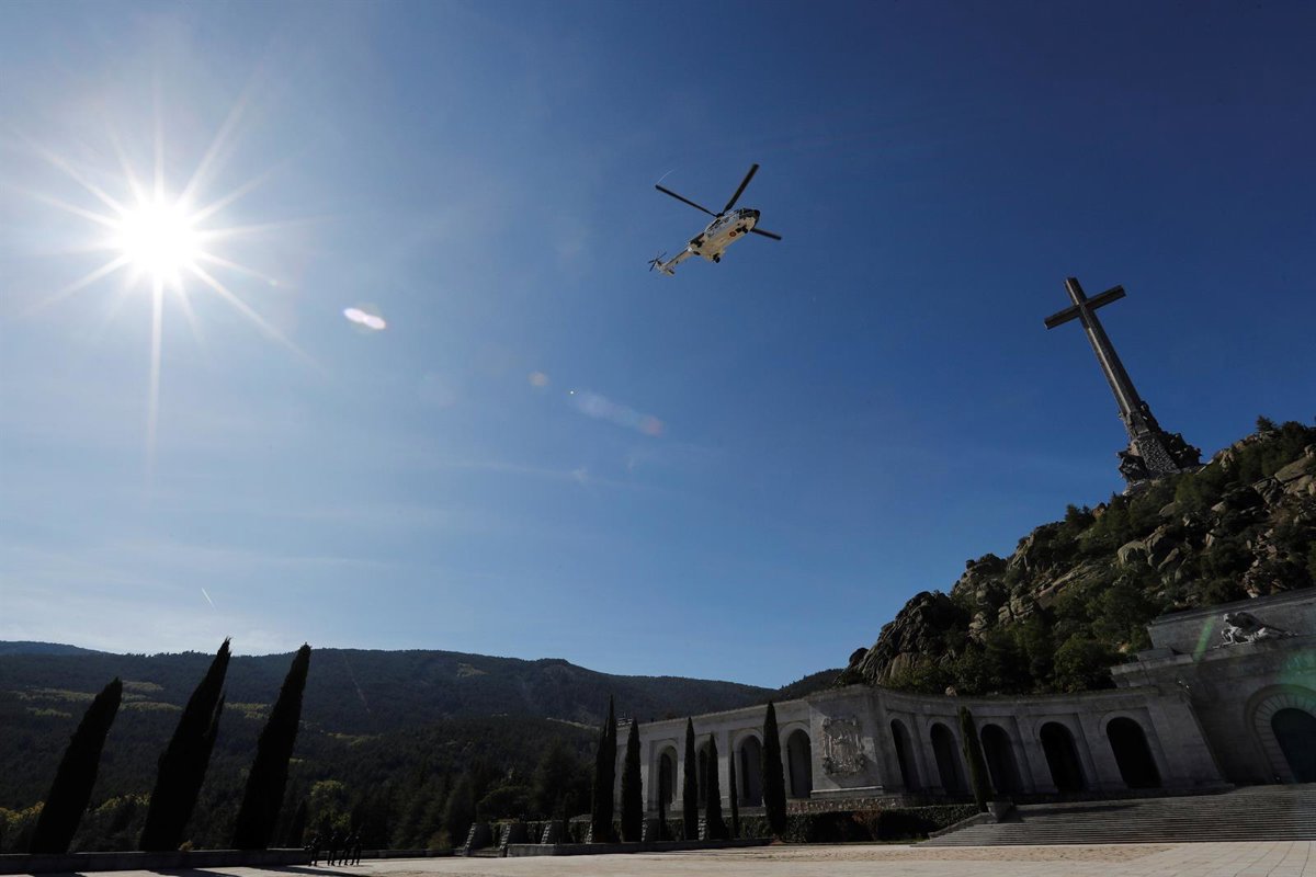 El helicóptero Super Puma del Ejército del Aire que traslada los restos mortales de Francisco Franco, despega la Basílica del Valle de Los Caídos - Pool - Archivo