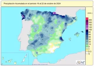 Las lluvias acumuladas hasta el 22 de octubre se cifran en 91 l/m2, alrededor de un 75% por encima de lo normal. - AEMET