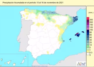 Precipitación acumulada en el periodo del 10 al 16 de noviembre de 2021 - AEMET