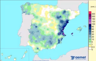 Al margen de ello, AEMET detalla que durante el periodo del 24 al 30 de septiembre las lluvias afectaron a gran parte de la Península y archipiélagos y fueron intensas en especial en el levante y en Ibiza, zonas donde se dieron los mayores acumulados. De hecho, en la mitad sur de esta última se superaron los 120 l/m2, al igual que en puntos del litoral de la Comunidad Valenciana y del interior de la provincia de Valencia. A su vez, también destacaron los más de 80 l/m2 en el delta del Ebro.