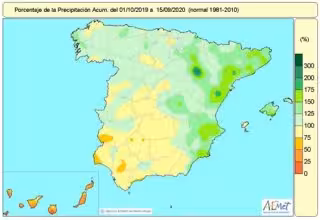 Las lluvias superan en un 11 por ciento los valores normales entre el 1 de octubre de 2019 y el 15 de septiembre de 2020. - AEMET
