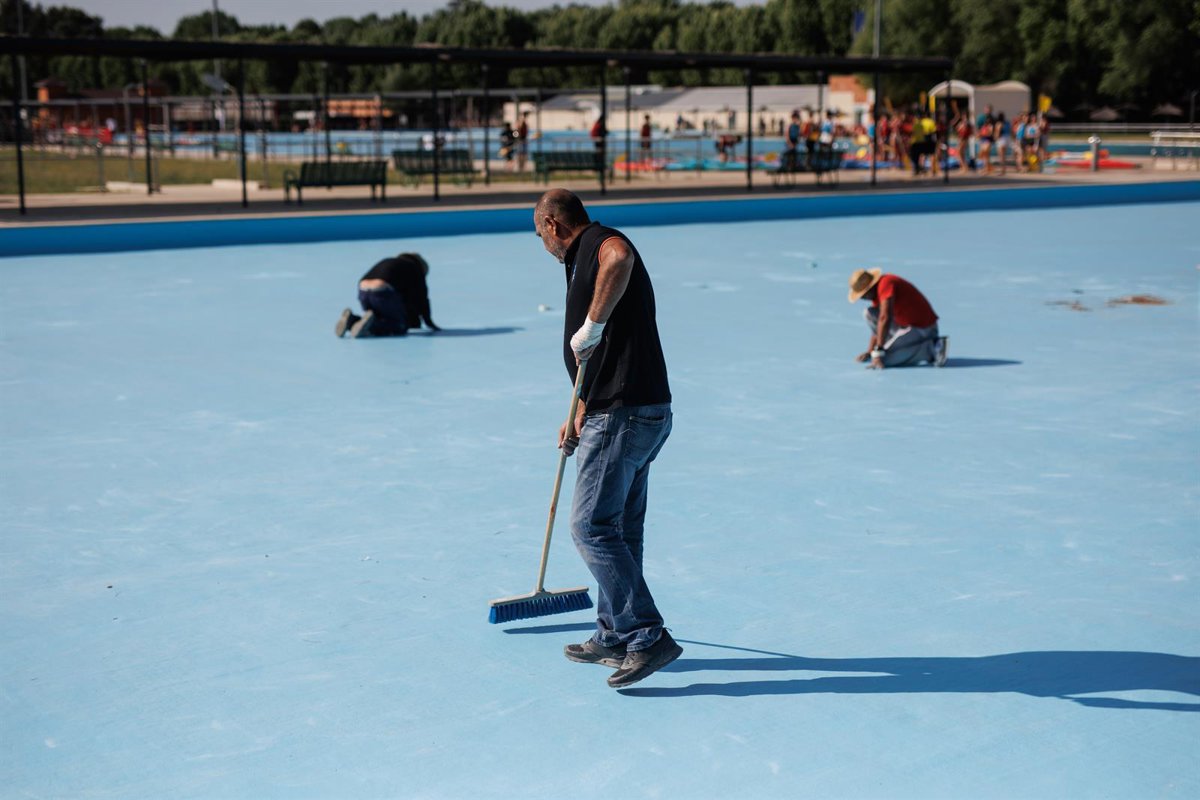 Archivo - Varios técnicos de mantenimiento realizan trabajos de acondicionamiento para la apertura de las piscinas, en la piscina de Puerta de Hierro, a 11 de mayo de 2023, en Madrid (España). 17 de las 23 piscinas gestionadas por el Ayuntamiento y la C - Alejandro Martínez Vélez - Europa Press - Archivo