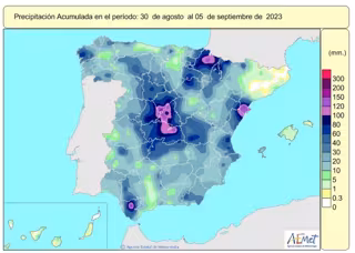 Precipitaciones acumuladas en el periodo comprendido entre el 30 de agosto y el 5 de septiembre de 2023 - AEMET
