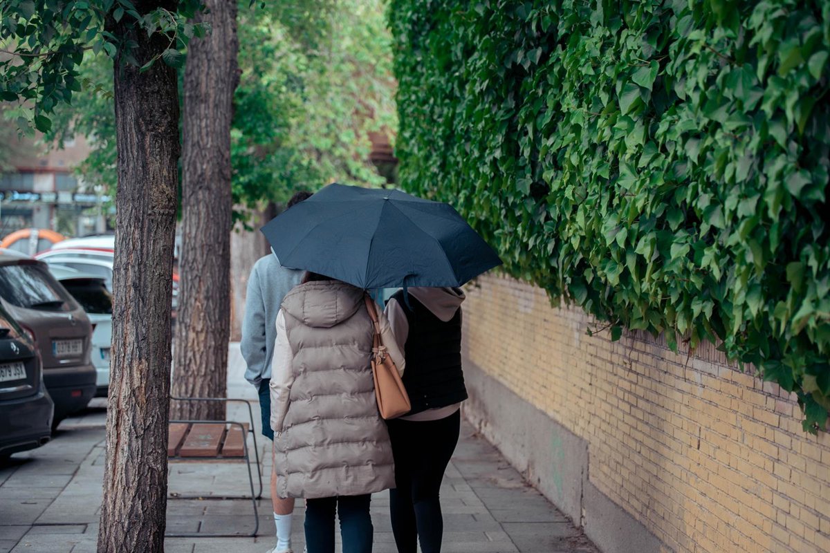 Varias personas pasean con paraguas, a 24 de mayo de 2023, en Madrid (España). La Agencia Estatal de Meteorología (Aemet) ha activado el aviso por tormentas, precipitaciones y los fenómenos costeros en ocho provincias por la entrada de una DANA (Depresi - Gabriel Luengas - Europa Press