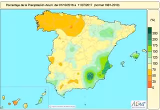 Las precipitaciones, sobre todo en forma de tormentas, que afectaron a gran parte de la Península y el norte de las islas canarias occidentales, han reducido el déficit acumulado en lo que va de año hidrológico (1 de octubre de 2016 a 30 de septiembre de 2017) desde el 13 al 11 por ciento, según la Agencia Estatal de Meteorología (AEMET).